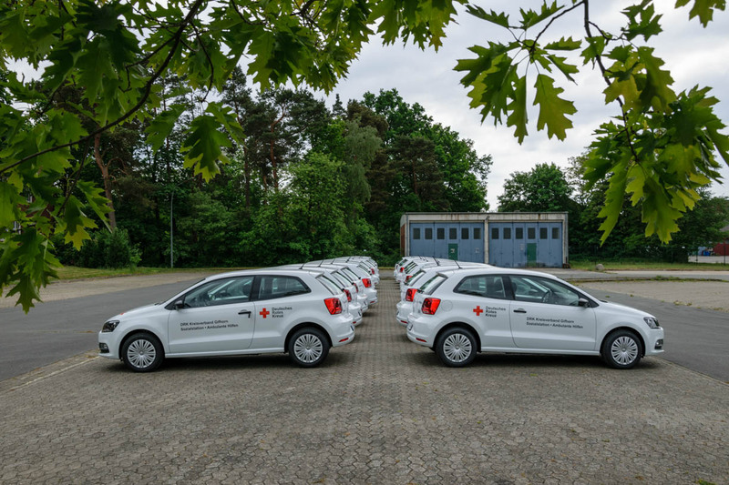 Am 23. Mai 2016 konnten auf dem großen Parkareal direkt neben unseren Büro- räumen im Hammerstein Park Wesendorf 24 neue Volkswagen Polo an unseren Kunden, das Deutsche Rote Kreuz aus Gifhorn, übergeben werden.